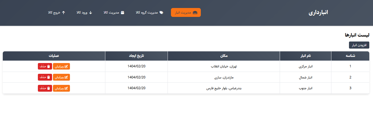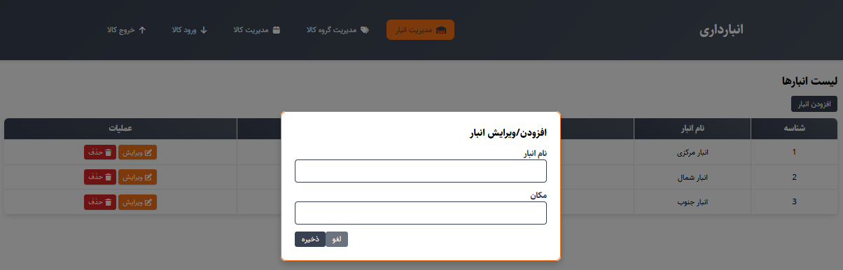 با این ماژول، میتوانید انبارهای مختلف را مدیریت کنید. امکانات این بخش شامل موارد زیر است: