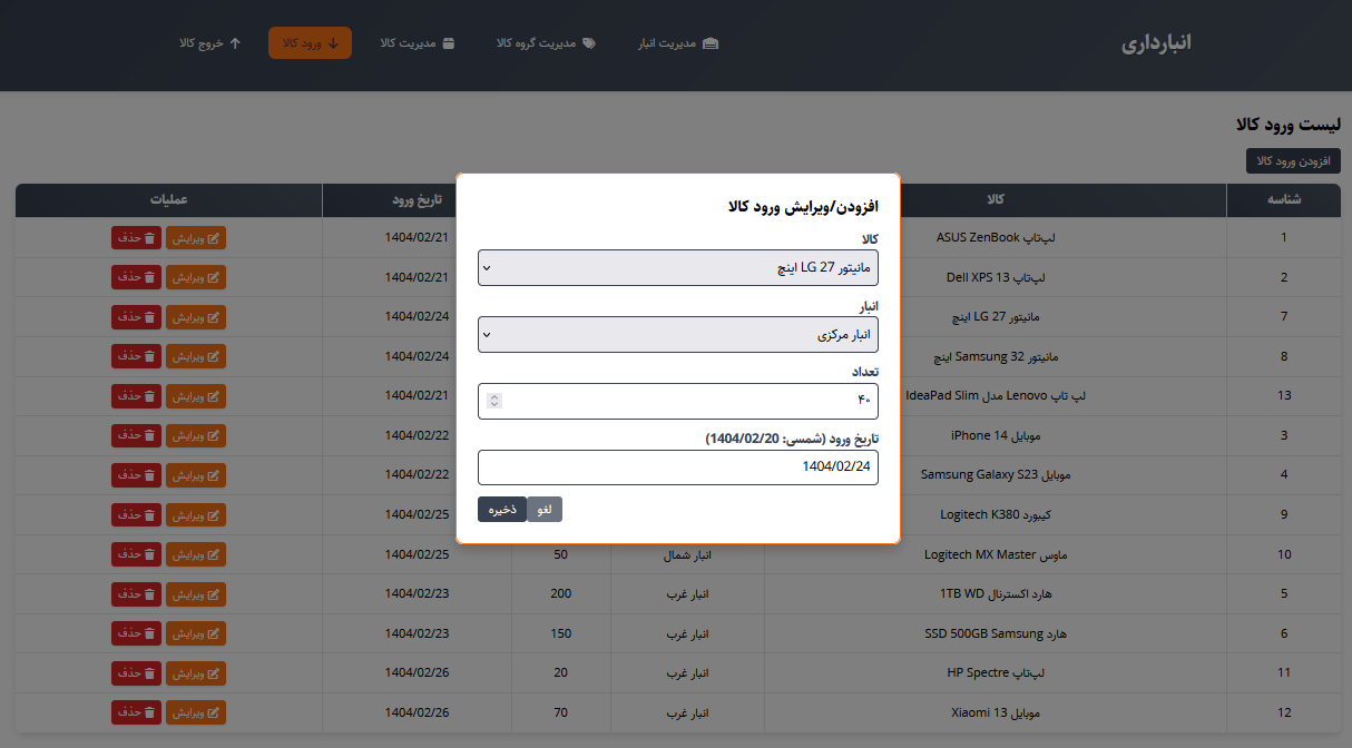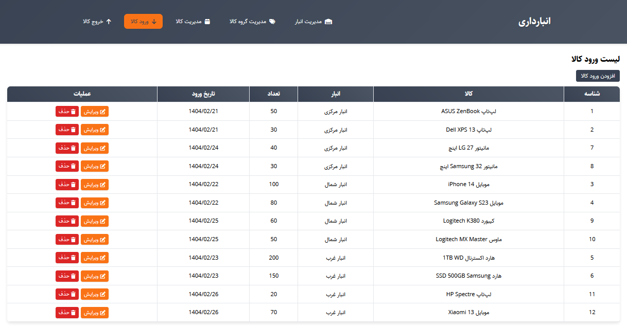 این ماژول برای ثبت ورود کالاها به انبار طراحی شده است: