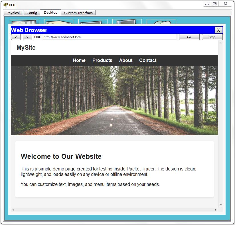 - وبسایت داخلی با نام دامنه باز میشود