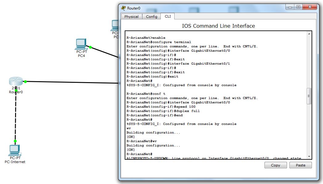 | PC-Internet (بیرون) | FastEthernet0 | 200.100.50.1 | 255.255.255.240 |