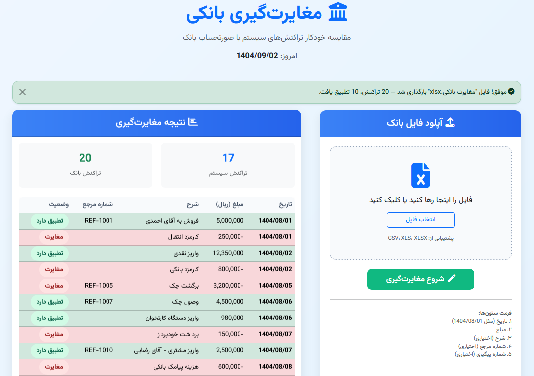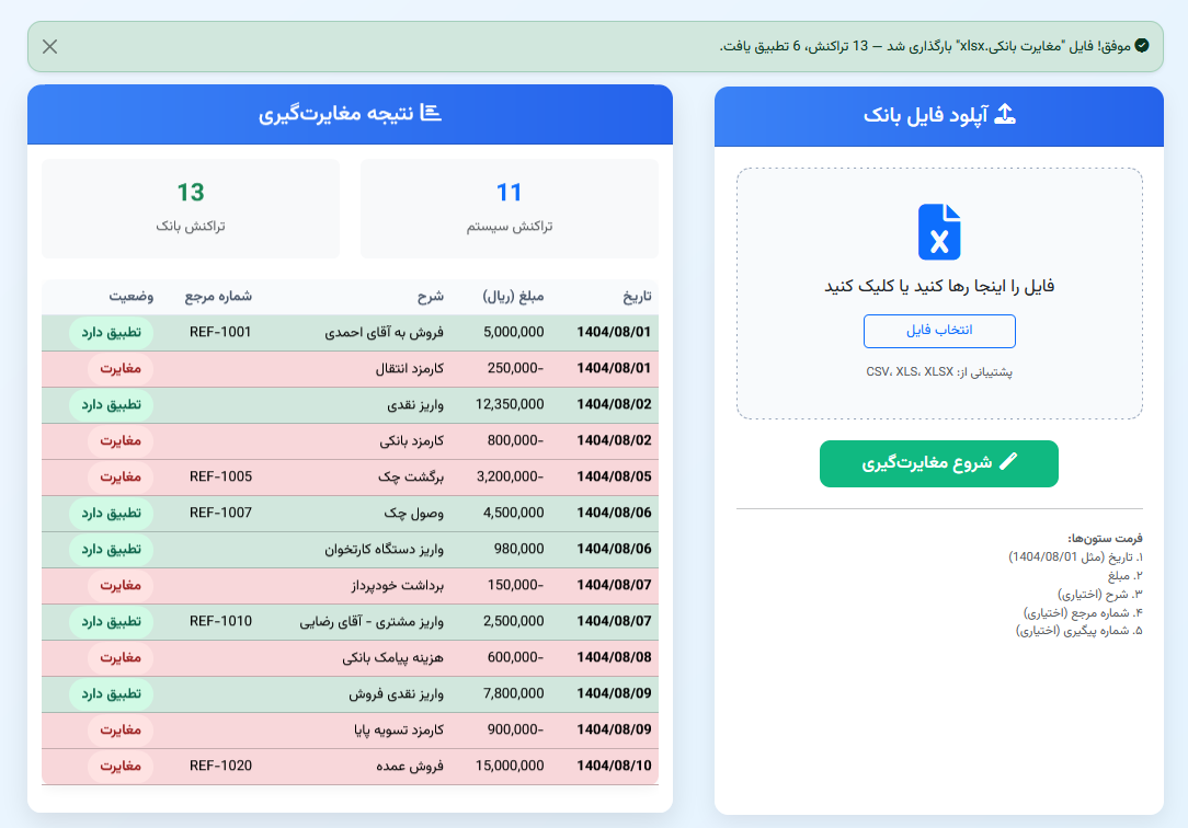 مغایرت‌گیری بانکی یکی از مهم‌ترین فرآیندهای مالی برای کسب‌وکارها و سازمان‌هاست. در این فرآیند، اطلاعات تراکنش‌های ثبت‌شده در سیستم داخلی سازمان با ریزتراکنش‌های ارائه‌شده توسط بانک مقایسه می‌شود تا اختلافات احتمالی شناسایی و اصلاح شود.