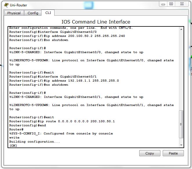 - روتر (2901 یا 4331) → نام پیشنهادی: Uni-Router → پورت Gi0/0 → IP: 200.100.50.2/28 → پورت Gi0/1 → IP: 192.168.1.1/24